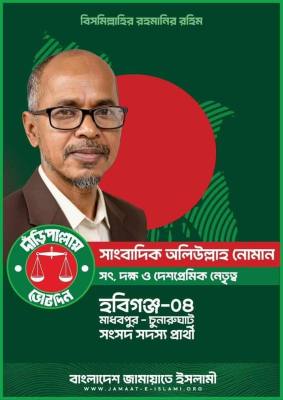 আজ আনুষ্ঠানিকভাবে বাংলাদেশ জামায়াতে ইসলামী আমাকে হবিগঞ্জ-৪ আসনের প্রার্থী হিসাবে ঘোষণা করেছে।