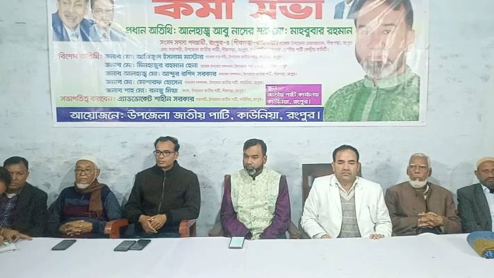 রংপুরের কাউনিয়ায় আগামী জাতীয় সংসদ নির্বাচনকে ঘিরে সংগঠনের নেতাকর্মীদের উজ্জীবিত ও নির্বাচনমূখী করার লক্ষ্যে জাতীয় পার্টি (জাপা) কর্মী সভা অনুষ্ঠিত হয়েছে।
