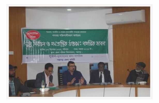 শনিবার (৬ ডিসেম্বর) পঞ্চগড়ে ‘সুষ্ঠু নির্বাচন ও গণতান্ত্রিক উত্তরণ: নাগরিক ভাবনা’ শীর্ষক গোলটেবিল বৈঠকে এসব কথা উঠে আসে। সুশাসনের জন্য নাগরিক—সুজন পঞ্চগড় জেলা কমিটির আয়োজনে জেলা পরিষদ মিলনায়তনে এ আলোচনা অনুষ্ঠিত হয়।