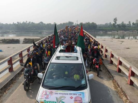 নওগাঁ-২ বিএনপি প্রার্থী সামসুজ্জোহার পক্ষে মোটরসাইকেল শোভাযাত্রা