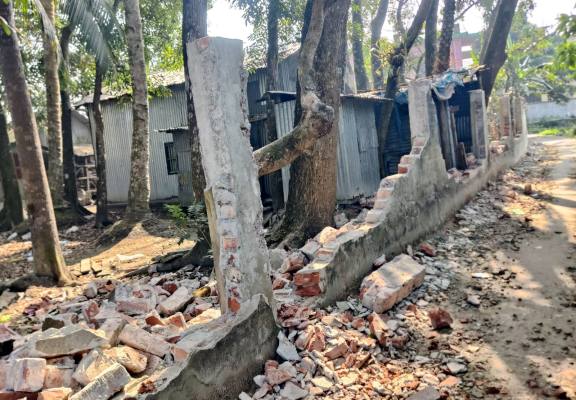 গৌরনদীতে রাতের আধারে প্রতিপক্ষের লোকজনের বিরুদ্ধে সীমানা প্রাচীর ভাঙচুরের অভিযোগ