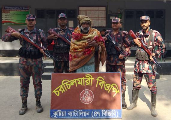 বিজিবি সূত্র জানায়, কুষ্টিয়া ব্যাটালিয়ন (৪৭ বিজিবি)-এর অধীনস্থ চরচিলমারী বিওপির দায়িত্বপূর্ণ এলাকায় সীমান্ত পিলার ৮৪/১-এস-এর কাছাকাছি বাংলাদেশ অভ্যন্তরে প্রায় ৫০ গজ ভেতরে ডিগ্রিরচর এলাকায় ভারত থেকে অবৈধভাবে বাংলাদেশে প্রবেশের সময় এম বাবু নামে ভারতীয় একজন নাগরিককে আটক করে নিজ ক্যাম্পে নেয় বিজিবি’র টহল দল।