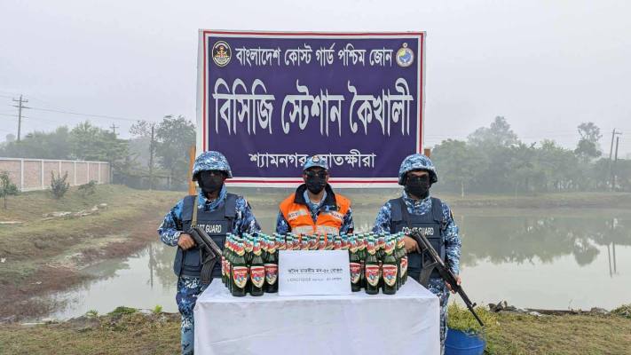 সাতক্ষীরার শ্যামনগরে কোস্ট গার্ডের অভিযানে ভারতীয় মদ জব্দ