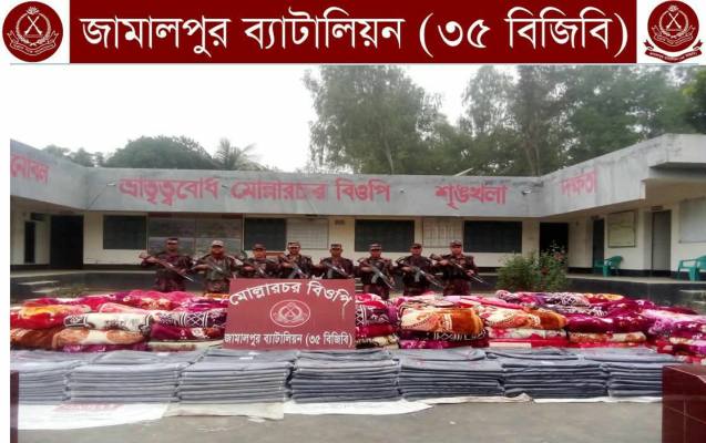 এরই অংশ হিসেবে জামালপুর ৩৫ ব্যাটালিয়নের (৩৫ বিজিবি) একটি বিশেষ অভিযানে বিপুল পরিমাণ ভারতীয় কাপড় ও কম্বল জব্দ করা হয়েছে।