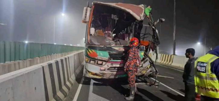 শুক্রবার (২৭ ডিসেম্বর) দিবাগত রাত ১টার দিকে শ্রীনগর উপজেলার ছনবাড়ী বাসস্ট্যান্ড এলাকায় এক্সপ্রেসওয়ের মাওয়ামুখী লেনে এই দুর্ঘটনা ঘটে। দুর্ঘটনার পর বাসের ভেতরে প্রায় অর্ধশত যাত্রী আটকা পড়লে ফায়ার সার্ভিস এসে তাদের উদ্ধার করে।