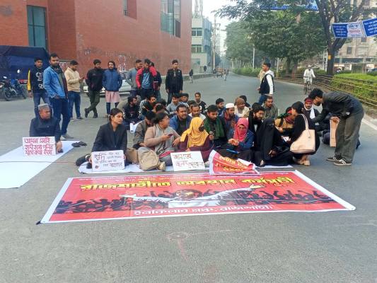 রাজশাহীতে শহীদ শরীফ ওসমান হাদি হত্যার বিচার দাবিতে সড়ক অবরোধ ও অবস্থান কর্মসূচি পালন করছে বিভিন্ন শিক্ষা প্রতিষ্ঠানের শিক্ষার্থীরা।