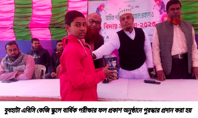 আশাশুনি উপজেলার বুধহাটা এবিসি কেজি স্কুলে শনিবার (২৭ ডিসেম্বর) বার্ষিক পরীক্ষার ফলাফল প্রকাশ এবং পঞ্চম শ্রেণির শিক্ষার্থীদের বিদায় সংবর্ধনা প্রদান করা হয়েছে। সকাল ১০টায় স্কুল প্রাঙ্গণে অনুষ্ঠিত অনুষ্ঠানে শিক্ষার্থীদের সাফল্য উদযাপন করা হয়।