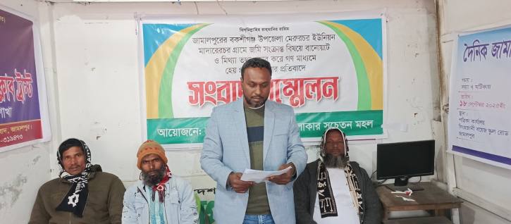 সংবাদ সম্মেলনে লিখিত বক্তব্য পাঠ করেন ভুক্তভোগী আলী হোসেন। তিনি অভিযোগ করে বলেন, বকশীগঞ্জ উপজেলার মেরুরচর ইউনিয়নের মাদারেরচর গ্রামে জমি সংক্রান্ত বিরোধকে কেন্দ্র করে তার মামাতো ভাই শাহ আলম বুদু গত বছরের ৩১ ডিসেম্বর একটি মিথ্যা ও ভিত্তিহীন সংবাদ সম্মেলন করেন। ওই সংবাদ সম্মেলনের বক্তব্য ১ জানুয়ারি বিভিন্ন জাতীয় ও স্থানীয় দৈনিক পত্রিকা, অনলাইন নিউজ পোর্টাল এবং ইলেকট্রনিক মিডিয়ায় প্রকাশিত হয়।