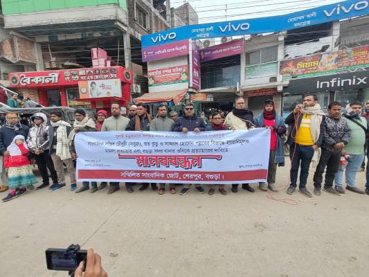 বক্তারা দ্রুত দাবি মানা না হলে বগুড়া ও শেরপুরের সাংবাদিক সমাজকে সঙ্গে নিয়ে কঠোর আন্দোলনের হুঁশিয়ারি দেন।