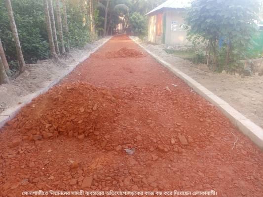 ফেনীর সোনাগাজীতে নিম্নমানের নির্মাণ সামগ্রী ব্যবহারের অভিযোগে একটি সড়কের কাজ বন্ধ করে দিয়েছেন বিক্ষুব্ধ এলাকাবাসী। বৃহস্পতিবার (৮ জানুয়ারি) দুপুরে উপজেলার মঙ্গলকান্দি ইউনিয়নের পূর্ব মীর্জাপুর গ্রামের চাঁন মিয়া ভূঞা সড়কে এ ঘটনা ঘটে।