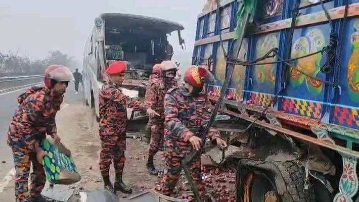 ঘণ কুয়াশায় ঢাকা-মাওয়া এক্সপ্রেসওয়ের মুন্সীগঞ্জের সিরাজদিখানে একটি থেমে থাকা পণ্যবাহী ট্রাকের পেছনে যাত্রীবাহী বাসের ধাক্কায় একজন নিহত হয়েছে।
