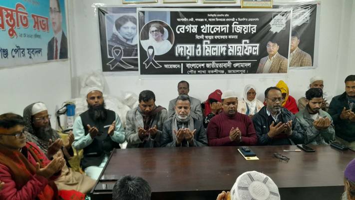 বকশীগঞ্জ পৌর ওলামা দলের আয়োজনে শুক্রবার (১৬ জানুয়ারি) সন্ধ্যায় বকশীগঞ্জ পৌর বিএনপির কার্যালয়ে ওই দোয়া মাহফিল অনুষ্ঠিত হয়।