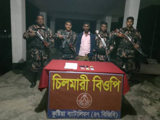 বিজিবি সূত্রে জানা যায়, সুনির্দিষ্ট গোয়েন্দা তথ্যের ভিত্তিতে শনিবার সন্ধ্যা সোয়া ৬টার দিকে কুষ্টিয়া ব্যাটালিয়ন (৪৭ বিজিবি)-এর অধীনস্থ চিলমারী বিওপির দায়িত্বপূর্ণ এলাকায় অভিযান পরিচালনা করা হয়। সীমান্ত পিলার ১৫৭/২-এস থেকে আনুমানিক ২৫০ গজ বাংলাদেশের অভ্যন্তরে সীমান্তসংলগ্ন ডাক্তারপাড়া এলাকায় চিলমারী বিওপির একটি টহল দল এ অভিযান চালায়।
