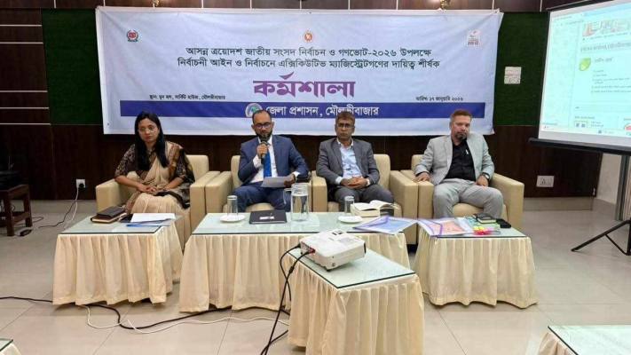 মৌলভীবাজারে নির্বাচনী আইন ও এক্সিকিউটিভ ম্যাজিস্ট্রেটদের দায়িত্ব বিষয়ক কর্মশালা অনুষ্ঠিত