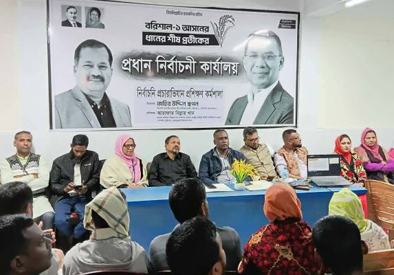 গৌরনদী উপজেলার বরিশাল- ১ আসনের ধানের শীষ প্রতীকের প্রধান নির্বাচনে কার্যালয় নির্বাচনী প্রচারাভিযানকে আরও কার্যকর ও সংগঠিত করতে একটি প্রশিক্ষণ কর্মশালা অনুষ্ঠিত হয়েছে।