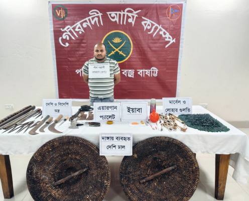 গৌরনদীতে সেনা অভিযানে ইয়াবা ও গুলিসহ রায়হান গ্রেপ্তার