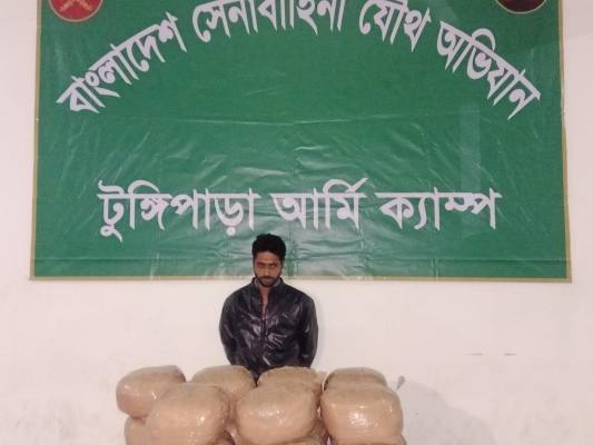 টুঙ্গিপাড়ায় যৌথবাহিনীর অভিযানে ৩৬ কেজি ৬শ’ গ্রাম গাঁজাসহ মাদক ব্যবসায়ী আটক