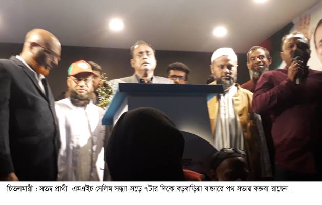 আসন্ন ত্রয়োদশ জাতীয় সংসদ নির্বাচনকে সামনে রেখে বাগেরহাট-১ (ফকিরহাট–মোল্লাহাট ও চিতলমারী) আসনের স্বতন্ত্র প্রার্থী এবং বিএনপির সাবেক সংসদ সদস্য এমএএইচ সেলিম চিতলমারীতে ব্যাপক গণসংযোগ, পথসভা ও লিফলেট বিতরণ করেছেন।