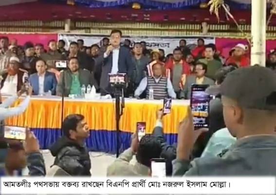 বরগুনা-১ আসনের বিএনপি প্রার্থী মোঃ নজরুল ইসলাম মোল্লা চাওড়া ইউনিয়ন বিএনপির আয়োজিত নির্বাচনী পথসভায় শনিবার রাতে প্রধান অতিথি হিসেবে বক্তব্য রাখেন। তিনি বলেন, “সারা জীবন শুনেছি, আমাকে ভোট দেন, আমি উন্নয়ন ও নিরাপত্তা দেব। আর এখন শুনছি, আমাকে ভোট দেন, আমি জান্নাত দেব। ভোটের সাথে জান্নাতের সম্পর্ক কি? যে বলেছে সে নিজে জান্নাতে যাবে কিনা?”