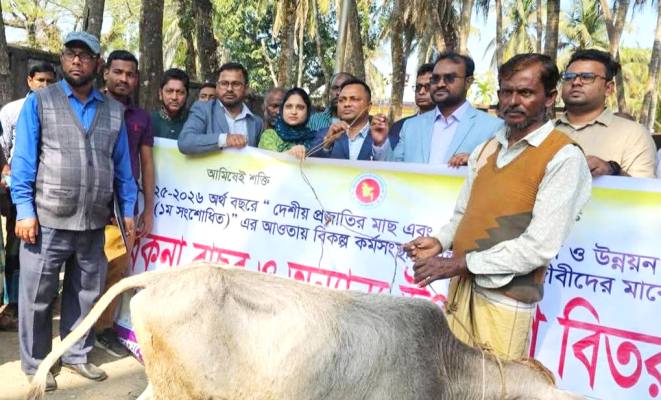 ঝালকাঠির কাঠালিয়া উপজেলায় বিকল্প কর্মসংস্থান সৃষ্টির লক্ষ্যে মৎস্যজীবীদের মাঝে বকনা বাছুর, গরুর খাবার ও ওষুধ বিতরণ করা হয়েছে।