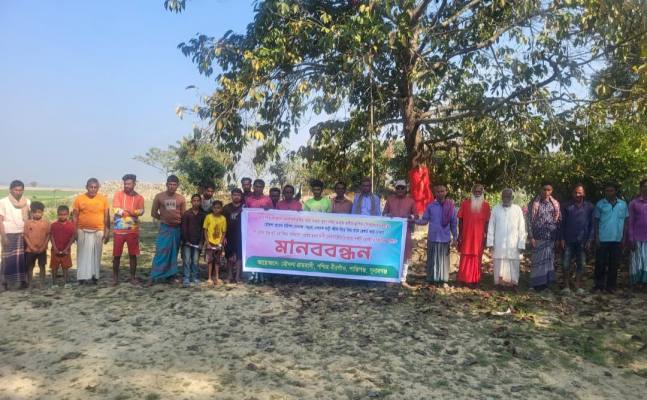 সুনামগঞ্জের শান্তিগঞ্জ উপজেলার পশ্চিম বীরগাঁও ইউনিয়নের মৌখলা গ্রামে বৃহস্পতিবার (৫ ফেব্রুয়ারি) বিকেলে জমি দখল ও মিথ্যা মামলার প্রতিবাদে মানববন্ধন অনুষ্ঠিত হয়। এতে গ্রামের সর্বস্তরের মানুষ অংশ নেন।