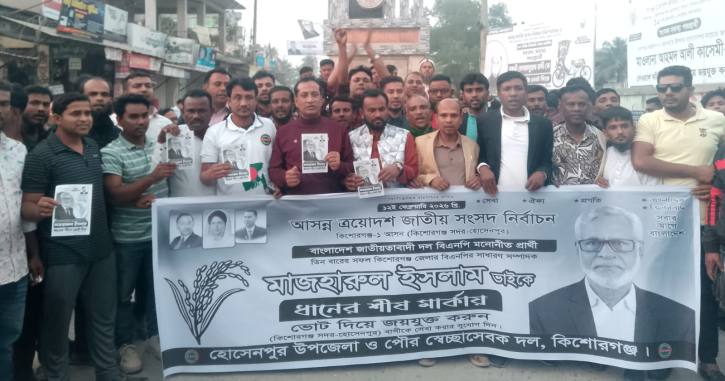 আসন্ন ত্রয়োদশ জাতীয় সংসদ নির্বাচনের প্রস্তুতি হিসেবে কিশোরগঞ্জ-১ (সদর ও হোসেনপুর) আসনে ধানের শীষের মনোনীত প্রার্থী ও তিন বারের সফল জেলা বিএনপির সাধারণ সম্পাদক মাজহারুল ইসলামের পক্ষে স্বেচ্ছাসেবক দলের বিশাল মিছিল ও গণসংযোগ অনুষ্ঠিত হয়েছে।