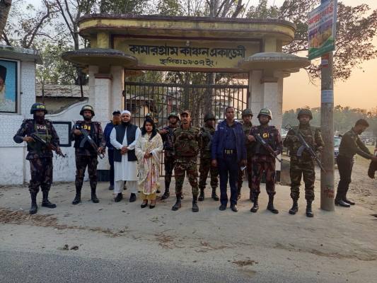 নির্বাচনকালীন নিরাপত্তা জোরদারের লক্ষ্যে সেনাবাহিনী, পুলিশ ও বিজিবি’র সমন্বয়ে গঠিত যৌথ বাহিনী উপজেলা প্রশাসনের সঙ্গে মিলিত হয়ে গুরুত্বপূর্ণ ও ঝুঁকিপূর্ণ ভোটকেন্দ্র সরেজমিনে ঘুরে দেখেন।