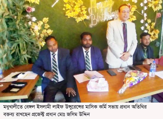 সভায় প্রধান অতিথি ছিলেন প্রজেক্ট প্রধান ডিএমডি মোঃ জসীম উদ্দিন। তিনি তার বক্তব্যে বলেন, “বাংলাদেশের ৩৬টি লাইফ ইন্সুরেন্স কোম্পানির মধ্যে বেঙ্গল ইসলামী লাইফ ইন্সুরেন্স একটি ব্যতিক্রমী প্রতিষ্ঠান। কোম্পানি শতভাগ শরিয়াহ্ বোর্ড ও মডেল অনুসারে ব্যবসা পরিচালনা করে এবং ৭ দিনের মধ্যে গ্রাহকের যেকোনো দাবি পরিশোধ নিশ্চিত করে। অনলাইন ও ব্যাংকিং এজেন্টদের মাধ্যমে লেনদেন হওয়ায় গ্রাহকের অর্থ নিরাপদ থাকে এবং গ্রাহক মুঠোফোন ও ডিজিটাল সফটওয়্যারের মাধ্যমে লেনদেন দেখতে পারেন।”