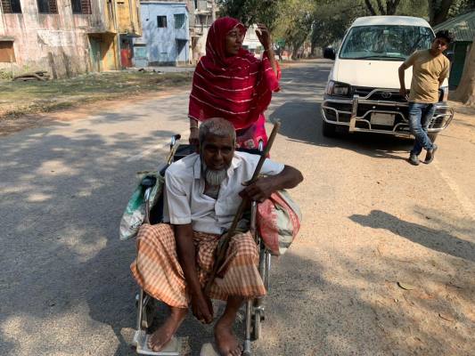 এক সপ্তাহ আগে স্ত্রীকে নিয়ে তিনি প্রায় ১০ কিলোমিটার দূরের খলিসাগাড়ি গ্রামে মেয়ের বাড়িতে গিয়েছিলেন। ভোটের দিন সকালে আবার নিজ গ্রামে ফিরে আসেন। রাস্তায় কোনো পরিবহন না পেয়ে স্ত্রী নিজ হাতে হুইলচেয়ার ঠেলে তাঁকে ভোটকেন্দ্রে নিয়ে আসেন।