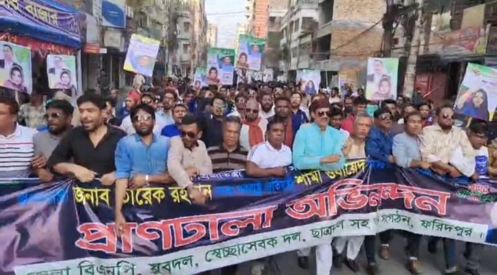 বাংলাদেশ জাতীয়তাবাদী দল (বিএনপি)-এর চেয়ারম্যান তারেক রহমান প্রধানমন্ত্রী এবং শামা ওবায়েদ ইসলাম পররাষ্ট্র প্রতিমন্ত্রী নির্বাচিত হওয়ায় ফরিদপুরে আনন্দ মিছিল ও সমাবেশ অনুষ্ঠিত হয়েছে। জেলা বিএনপি, স্বেচ্ছাসেবক দল, যুবদল ও ছাত্রদলের যৌথ উদ্যোগে এ কর্মসূচি পালিত হয়।