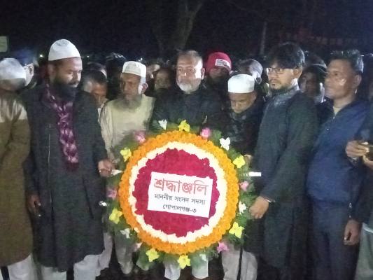 একুশের প্রথম প্রহরে উপজেলা পরিষদ সংলগ্ন কেন্দ্রীয় শহীদ মিনারে পুষ্পস্তবক অর্পণের মাধ্যমে ভাষা শহীদদের প্রতি শ্রদ্ধা নিবেদন শুরু হয়। রাত ১২টা ১ মিনিটে এস এম জিলানী, গোপালগঞ্জ-৩ আসনের নবনির্বাচিত সংসদ সদস্য ও কেন্দ্রীয় স্বেচ্ছাসেবক দলের সভাপতি, শহীদ মিনারে পুষ্পস্তবক অর্পণ করেন।
