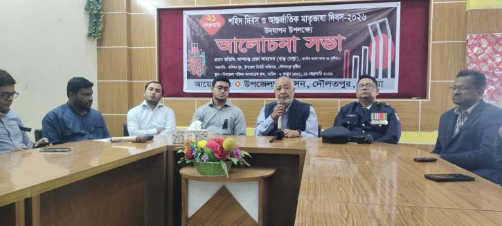 অন্যান্যদের মধ্যে বক্তব্য রাখেন সহকারী কমিশনার (ভূমি) প্রদীপ কুমার দাশ, দৌলতপুর থানার ওসি মো. আরিফুর রহমান এবং দৌলতপুর গার্লস কলেজের অধ্যক্ষ মো. রেজাউল করিম। আলোচনা সভায় শহীদদের অবদান ও মাতৃভাষার মর্যাদা রক্ষায় সচেতনতা বৃদ্ধির ওপর গুরুত্বারোপ করা হয়।