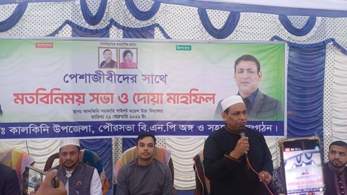 মাদারীপুরের কালকিনিতে পেশাজীবী সংগঠনের নেতাকর্মীদের সঙ্গে নবনির্বাচিত মাদারীপুর-৩ আসনের সংসদ সদস্য আনিছুর রহমান তালুকদার খোকন-এর মতবিনিময় ও দোয়া মাহফিল অনুষ্ঠিত হয়েছে। শনিবার (২১ ফেব্রুয়ারি) বিকেলে কালকিনি সরকারি পাইলট মডেল উচ্চ বিদ্যালয় মাঠে এ অনুষ্ঠানের আয়োজন করা হয়।