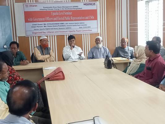 উত্তরণ ও আশাশুনি উপজেলা পানি কমিটির আয়োজনে অনুষ্ঠিত সেমিনারে প্রধান অতিথি হিসেবে বক্তব্য রাখেন উপজেলা নির্বাহী অফিসার মোঃ সাইদুজ্জামান হিমু।