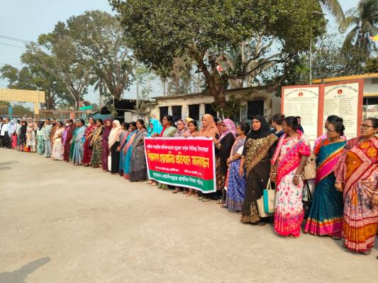 সোমবার দুপুর ১২টা থেকে ১টা পর্যন্ত উপজেলা শহীদ মিনার চত্বরে ১৮৭ জন প্রধান শিক্ষক হাতে হাত রেখে এক ঘন্টা ব্যাপী মানববন্ধন করেন।