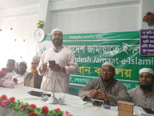 নড়াইল জেলা জামায়াতে ইসলামীর শুরা সদস্য জামিউর রহমান টুটুলের সভাপতিত্বে সভায় বক্তব্য রাখেন লোহাগড়া বাজার বণিক সমিতির সাধারণ সম্পাদক ইঞ্জিনিয়ার রাজু আহমেদ বাপ্পি, ফরিদুজ্জামান ফরিদ, আসাদুজ্জামান কদর, আলী মিয়া, ইবাদত শিকদার, বাবলু মিয়া, শুবল বিশ্বাস, আকরাম হোসেন, নজরুল ইসলাম, কালু পোদ্দার, ইমরান হোসেন, কাদের মোল্যা ও শাফায়েত হোসেন প্রমুখ।