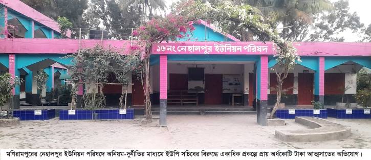 যশোরের মনিরামপুর উপজেলার নেহালপুর ইউনিয়ন পরিষদের সচিব মিজানুর রহমান-এর বিরুদ্ধে সীমাহীন দুর্নীতি, অনিয়ম ও সরকারি অর্থ আত্মসাতের অভিযোগ উঠেছে। বৃহস্পতিবার ইউনিয়ন পরিষদে এক গণসভায় ইউপি সদস্য নজরুল ইসলাম, আলেয়া বেগম, লাকী বেগম ও মুজিবর রহমান অভিযোগ করেন, সচিব মিজানুর রহমান বিভিন্ন প্রকল্পে অনিয়ম ও অনৈতিক কর্মকাণ্ডের মাধ্যমে প্রায় অর্ধকোটি টাকা আত্মসাৎ করেছেন।