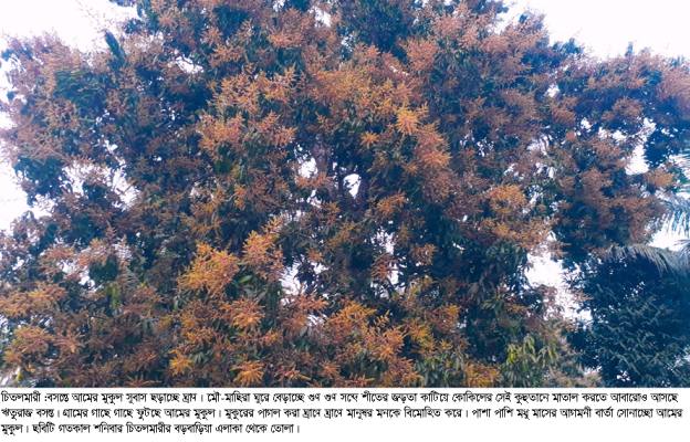 সব মিলিয়ে আমের মুকুলে ভরে ওঠা প্রকৃতি যেন এক আশার বার্তা। প্রকৃতির এই সৌন্দর্য যেমন মনকে ছুঁয়ে যায়, তেমনি কৃষকের হৃদয়ে জাগায় সমৃদ্ধির স্বপ্ন। বসন্তের এই সুবাসময় দিনগুলোতে আমগাছ যেন নতুন করে জানিয়ে দেয়—বাংলার প্রাণ, বাংলার আশা এখনো মাটির সঙ্গেই জড়িয়ে আছে।