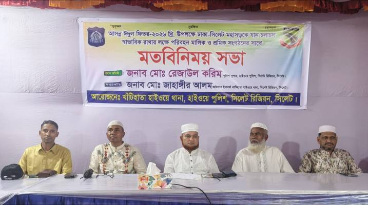 ব্রাহ্মণবাড়িয়ার খাটিহাতা হাইওয়ে থানার উদ্যোগে পবিত্র ঈদুল ফিতরে ঢাকা-সিলেট মহাসড়কে যান চলাচল স্বাভাবিক রাখার লক্ষ্যে রবিবার (৮ মার্চ) পরিবহন মালিক ও শ্রমিক সংগঠনের নেতৃবৃন্দের সাথে মতবিনিময় সভা অনুষ্ঠিত হয়েছে। সভা খাটিহাতা হাইওয়ে থানা প্রাঙ্গণে বিকাল ৪টায় অনুষ্ঠিত হয়।
