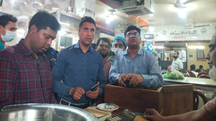 ভ্রাম্যমাণ আদালত সূত্রে জানা যায়, অভিযানের শুরুতে নিউমার্কেট এলাকার চৌধুরী কিচেনে ফ্রিজে মেয়াদোত্তীর্ণ খাবার মজুত পাওয়া যায়। এছাড়া নিষিদ্ধ এনার্জি ড্রিংক এবং আমদানিকারকের ট্যাগবিহীন বিদেশি পণ্য বিক্রির দায়ে প্রতিষ্ঠানের ম্যানেজার সোহেল রানার কাছ থেকে ২০ হাজার টাকা জরিমানা আদায় করা হয়।