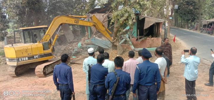 বৃহস্পতিবার (১২ মার্চ) দুপুরে বহরপুর ইউনিয়নের রায়পুর মৌজার ১ নম্বর খাস খতিয়ানভুক্ত ২৭ ও ২৮ নম্বর দাগে এ উচ্ছেদ অভিযান পরিচালনা করা হয়।