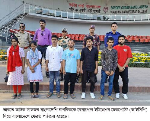 ভারতে আটক সাতজন বাংলাদেশি নাগরিককে ট্রাভেল পারমিটের মাধ্যমে বেনাপোল চেকপোস্ট দিয়ে দেশে ফেরত পাঠানো হয়েছে।