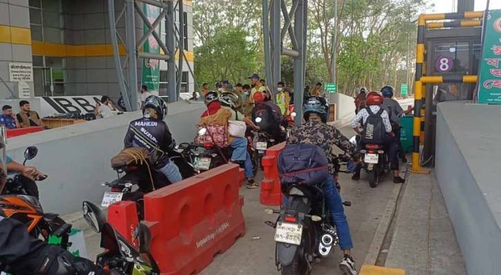 সরেজমিনে দেখা গেছে, টোল প্লাজায় মোটরসাইকেলের জন্য পৃথক তিনটি লেন চালু থাকলেও একসঙ্গে বিপুল সংখ্যক মোটরসাইকেল এসে পৌঁছালে সাময়িক ধীরগতি তৈরি হচ্ছে। তবে দ্রুতই পরিস্থিতি স্বাভাবিক হয়ে যাচ্ছে। অন্যদিকে বড় যানবাহনের জন্য সাতটি লেন চালু থাকায় সেগুলোর চলাচল স্বাভাবিক রয়েছে।