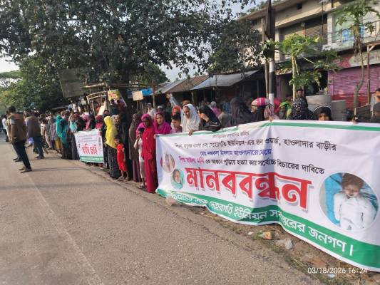 মানববন্ধন শেষে অংশগ্রহণকারীরা একই দাবিতে বিভিন্ন স্লোগান দেন এবং ন্যায়বিচার প্রতিষ্ঠার প্রত্যাশা ব্যক্ত করেন।