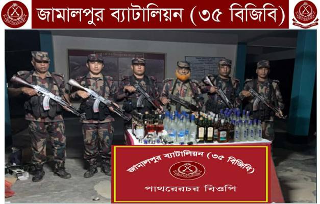 জামালপুরের দেওয়ানগঞ্জে ৩৫ ব্যাটালিয়ন বর্ডার গার্ড বাংলাদেশ এর (বিজিবি) অভিযানে ৮৩ বোতল ভারতীয় মদ উদ্ধার হয়েছে।