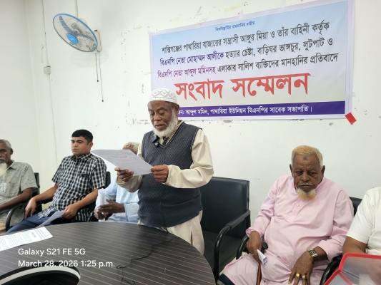 সুনামগঞ্জের শান্তিগঞ্জ উপজেলার পাথারিয়া বাজারে বিএনপি নেতা মোহাম্মদ আলীর ওপর বর্বরোচিত হামলা, বাড়িঘর ভাঙচুর ও লুটপাটের প্রতিবাদে সংবাদ সম্মেলন অনুষ্ঠিত হয়েছে।