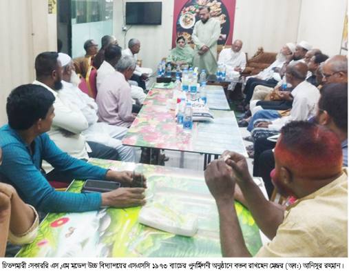 বাগেরহাটের চিতলমারী সরকারি এস. এম. মডেল উচ্চ বিদ্যালয়ের ১৯৭৩ সালের এসএসসি ব্যাচের প্রাক্তন ছাত্রদের পুনর্মিলনী ও মতবিনিময় সভা অনুষ্ঠিত হয়েছে। গত ২৮ মার্চ (শনিবার) সন্ধ্যায় চিতলমারী সদর বাজারে ক্যাফে আব্দুল্লাহ হোটেলের সভাকক্ষে এ পুনর্মিলনী ও মতবিনিময় সভা অনুষ্ঠিত হয়।