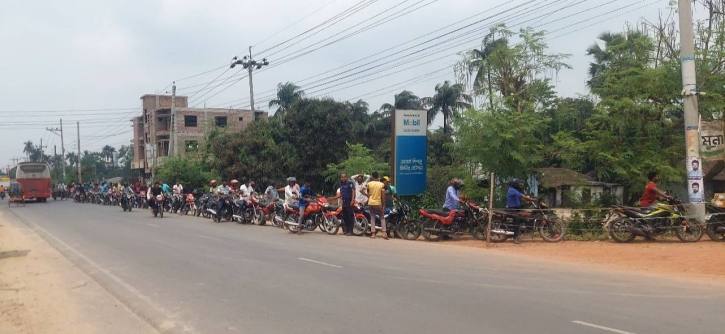 একটিতে দেওয়া তেল হলে অপর দু’টি বন্ধ থাকে। আর যে পাম্পে তেল দেওয়া হয় সেই তেল পাম্পে ভোররাত বা গভীর রাত থেকে মোটরসাইকেলের দীর্ঘ লাইন পড়ে যায়। তারপরও ঘণ্টার পর ঘণ্টা লাইনে দাঁড়িয়ে থেকেও তেল সংগ্রহ করতে পারেননা অনেকেই।