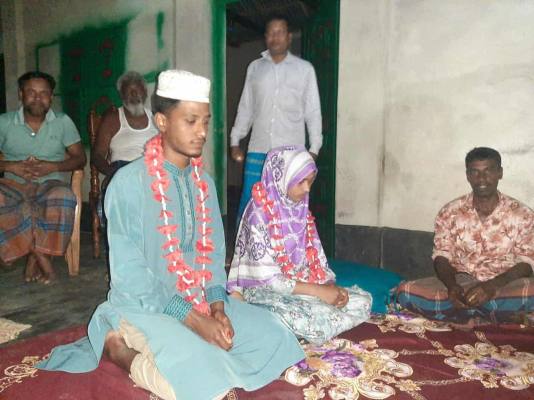 দীর্ঘ নাটকীয়তার পর গভীর রাত প্রায় ২টার দিকে ছেলের নিজ বাড়িতেই মেয়ের মায়ের উপস্থিতিতে বিয়ের আনুষ্ঠানিকতা সম্পন্ন হয়। এসময় সাড়ে তিন লাখ টাকা মোহরানা নির্ধারণ করা হয়। স্থানীয় একজন আলেমের মাধ্যমে বিয়ে পড়ানো হয় এবং সহজ আয়োজনের মধ্য দিয়ে ওলিমা হিসেবে বিস্কুট বিতরণ করা হয়।