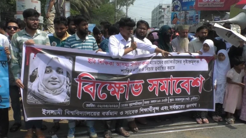 কুষ্টিয়ার ইসলামী বিশ্ববিদ্যালয়ের সমাজকল্যাণ বিভাগের চেয়ারম্যান ও সহকারী অধ্যাপক আসমা সাদিয়া রুনা হত্যায় জড়িতদের গ্রেফতার ও দৃষ্টান্তমূলক শাস্তির দাবিতে কুষ্টিয়ায় সড়ক অবরোধ করে বিক্ষোভ সমাবেশ করেছে নিহতের স্বজনসহ বিশ্ববিদ্যালয়ের বর্তমান ও সাবেক শিক্ষার্থীরা।